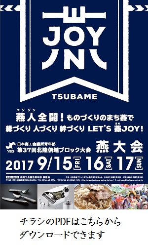 9月15日~17日にかけて開催された「日本商工会議所青年部連合会 第37回北陸信越ブロック大会 燕大会」は、